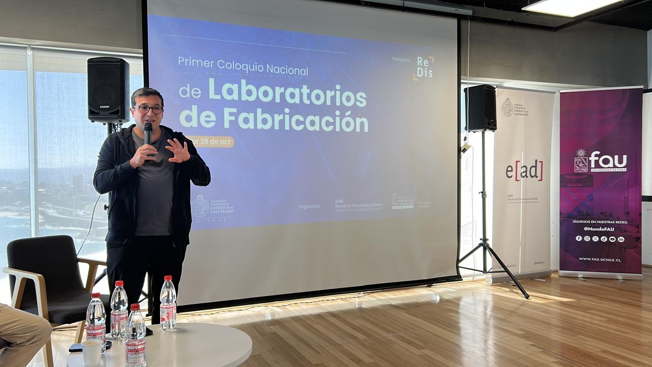La actividad fue inaugurada por David Luza, director de la Escuela de Arquitectura y Diseño, junto con las presentaciones de Astrid Osorio (FAU Universidad de Chile) y Juan Carlos Jeldes (PUCV), quienes dieron contexto a la importancia de crear un espacio de articulación nacional entre los laboratorios de fabricación.