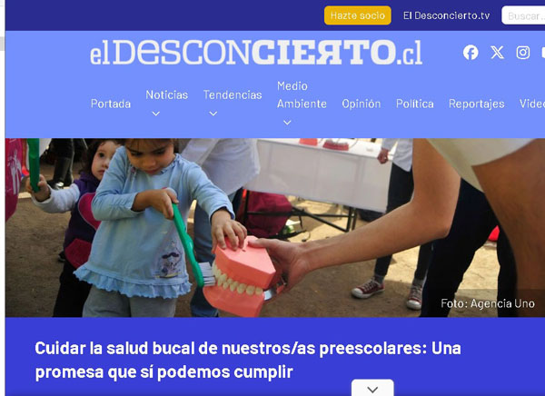 En el marco del 10° Aniversario del Programa Sembrando Sonrisas, la Columna Cuidar la salud bucal de nuestros/as preescolares: Una promesa que sí podemos cumplir, escita por el Dr. Rodrigo Cabello Ibacache, Vicedecano Facultad de Odontología U. de Chile; el Dr. Gonzalo Rodríguez Martínez, Director del Departamento de Odontología Restauradora, Facultad de Odontología U. de Chile; y la Dra. Begoña Ruiz Conrads, académica del Departamento de Odontología Restauradora y del Instituto de Investigación en Ciencias Odontológicas, Facultad de Odontología U. de Chile y Presidenta de la Academia de Cariología 2025, fue publicada por el medio digital El Desconcierto.