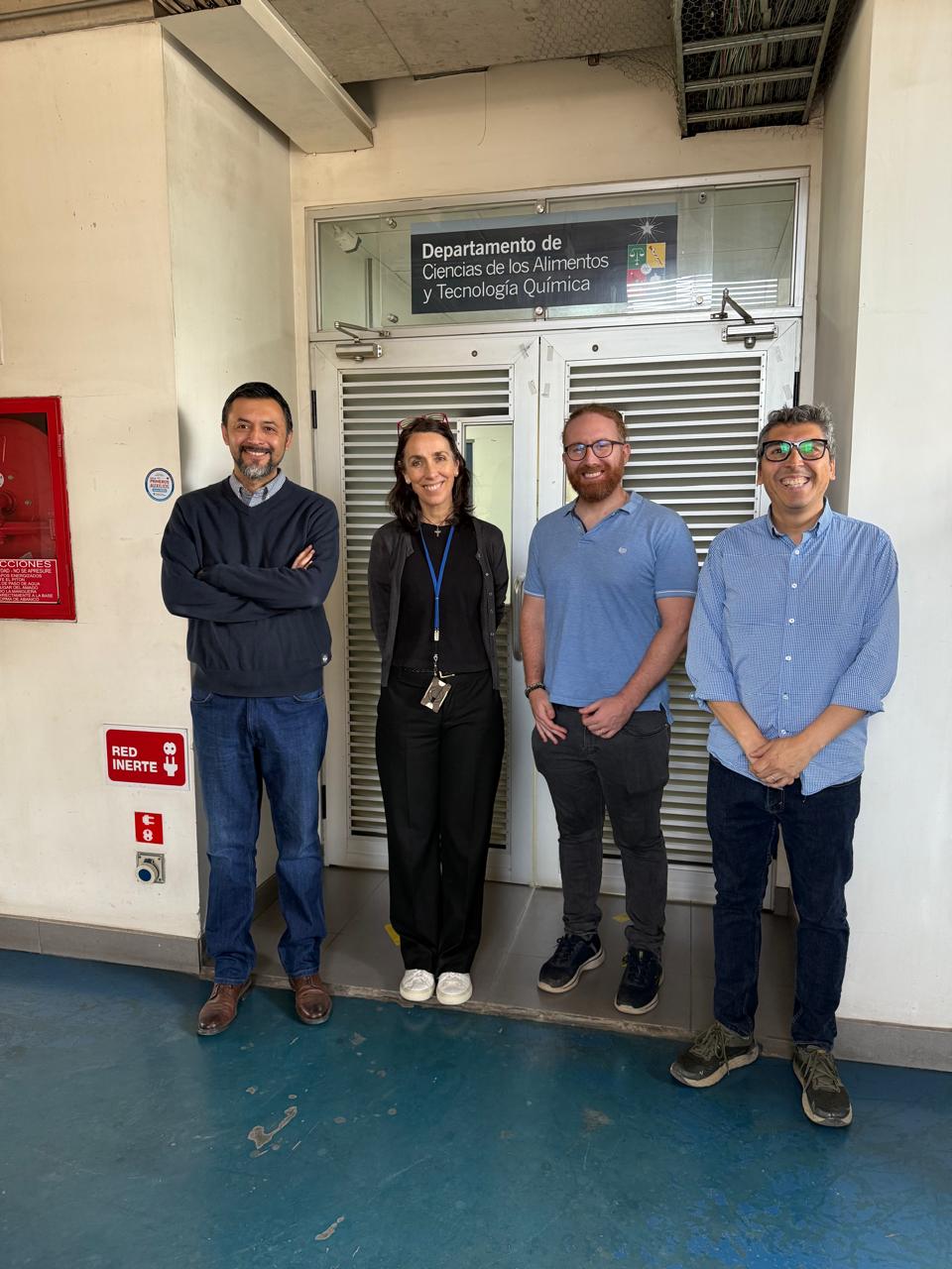 El Dr. Alberto Baldelli, Senior Lecturer de la School of Agriculture and Food Sustainability de la Universidad de Queensland, Australia, visitó el pasado martes 4 y miércoles 5 de noviembre la Facultad de Ciencias Químicas y Farmacéuticas de la Universidad de Chile. Durante su estancia, se reunió con los profesores Roberto Lemus y Luis Puente, académicos del Departamento de Ciencia de los Alimentos y Tecnología Química, y tuvo la oportunidad de compartir con estudiantes de pregrado y postgrado, además de conocer en terreno los laboratorios y su equipamiento.