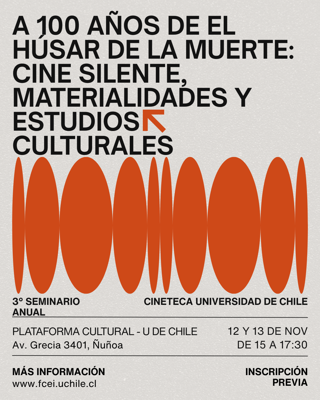 Ad portas de los cien años del filme mudo más importante de la historia nacional, la Cineteca de la Universidad de Chile prepara su III° Seminario de Archivos, cuya temática de este año será “A 100 años de El húsar de la muerte: cine silente, materialidades y estudios culturales”. El evento se realizará los días 12 y 13 de noviembre en la Plataforma Cultural del Campus Juan Gómez Millas de la Universidad de Chile.