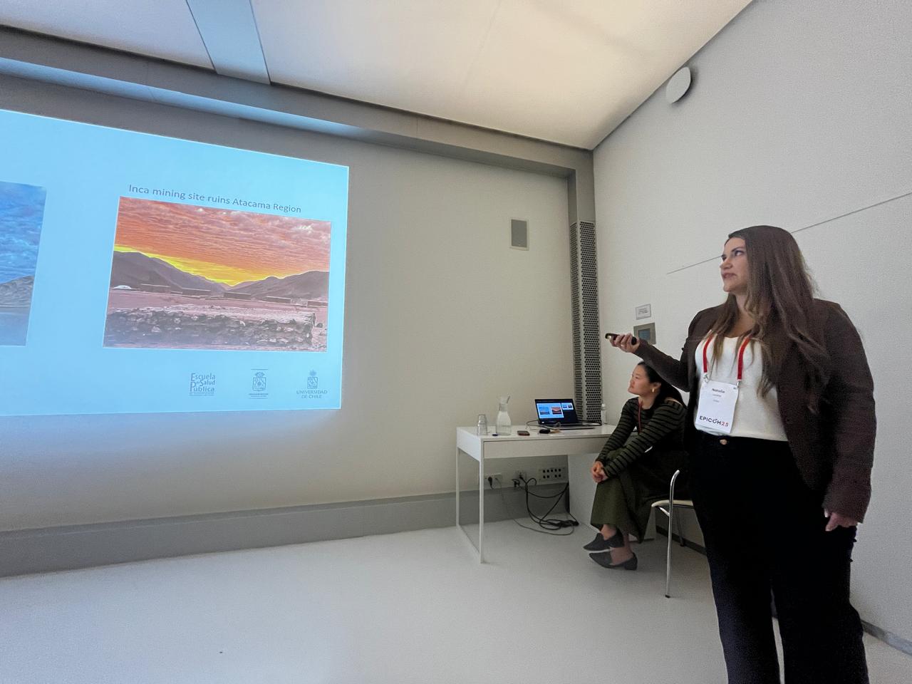 Por su parte, Natalia Lucero presentó “Adaptation and content validity of a battery of questionnaires for identifying occupational conditions among Chilean artisanal and small-scale miners”, investigación desarrollada en el marco de los proyectos FONIS SA2410264 (2024–2026) y ESP 2023. Su trabajo abordó la validación de instrumentos adaptados a la realidad local de la minería artesanal, un sector históricamente excluido de la vigilancia ocupacional. El proceso metodológico incluyó juicio de expertos y análisis del coeficiente V de Aiken para evaluar la pertinencia, claridad y relevancia de los ítems.