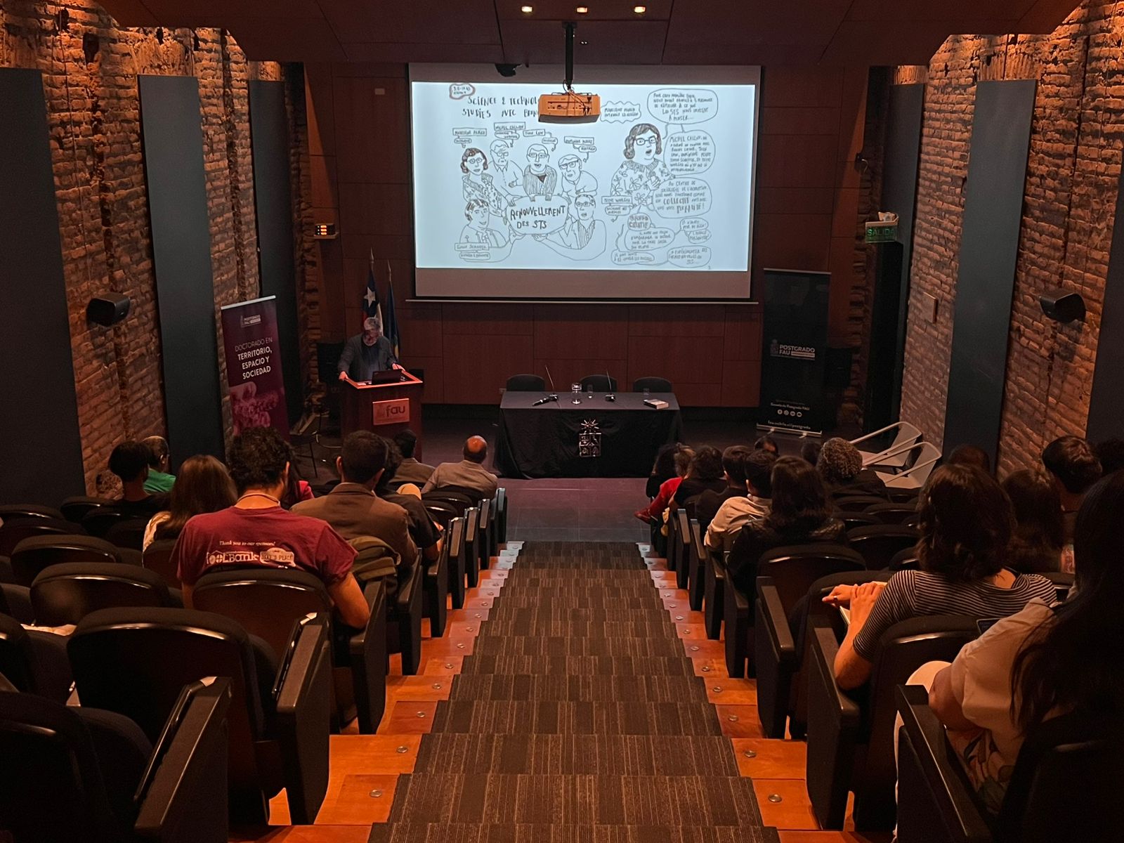 El académico del Departamento de Geografía y Coordinador del Doctorado, Prof. Miguel Contreras, quien abrió la jornada, destacó que el propósito del seminario fue “reimpulsar conversaciones de nivel doctoral que trasciendan el ámbito académico y convoquen a la comunidad universitaria en su conjunto”, enfatizando la necesidad de construir espacios de diálogo interdisciplinario entre territorio, espacio y sociedad. .jpeg)