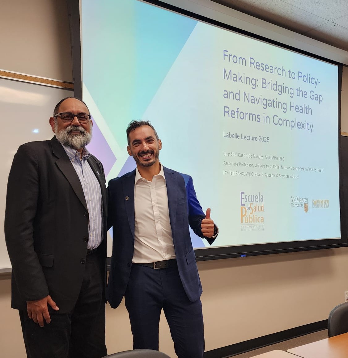 El Dr. Cristóbal Cuadrado, académico de la Escuela de Salud Pública de la Facultad de Medicina de la Universidad de Chile, fue reconocido con la Labelle Lecture 2025, uno de los premios internacionales más prestigiosos en el ámbito de la economía de la salud y las políticas públicas. La distinción, otorgada por el Centre for Health Economics and Policy Analysis (CHEPA) de la Universidad McMaster en Canadá, se entrega desde 1986 a “estrellas en ascenso” que han realizado contribuciones significativas a la investigación interdisciplinaria y la equidad en salud.