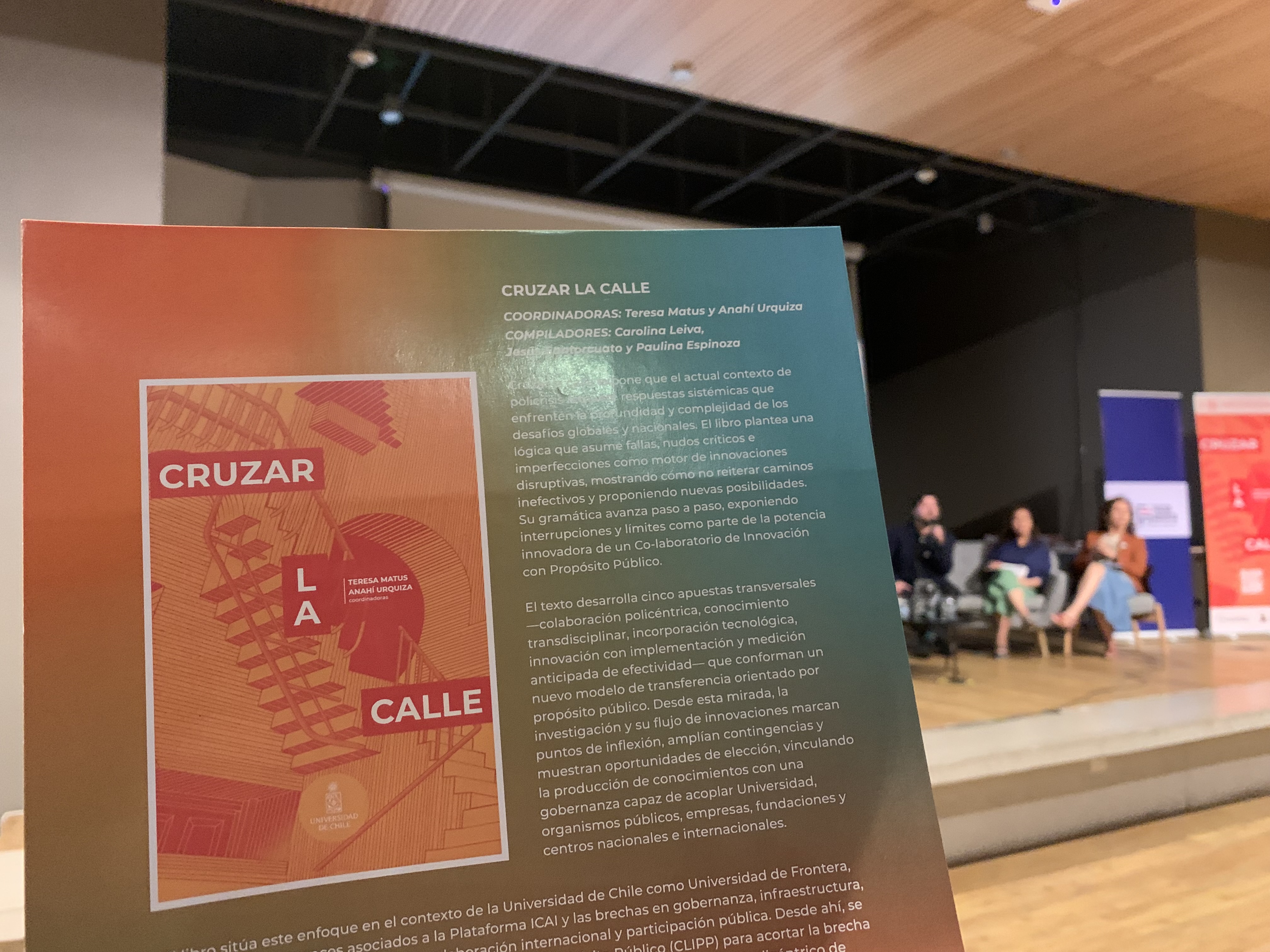 Otro momento importante del lanzamiento fue la presentación de “Cruzar la calle”, nombre del primer libro de la Serie CLIPP, editado por Publicaciones de la Universidad de Chile, una invitación a profundizar acerca de los principios que dan origen a la creación de este Co-laboratorio orientado al propósito público. El texto fue entregado a autoridades y representantes del mundo universitario, civil y privado reunidos en el Directorio de la iniciativa.