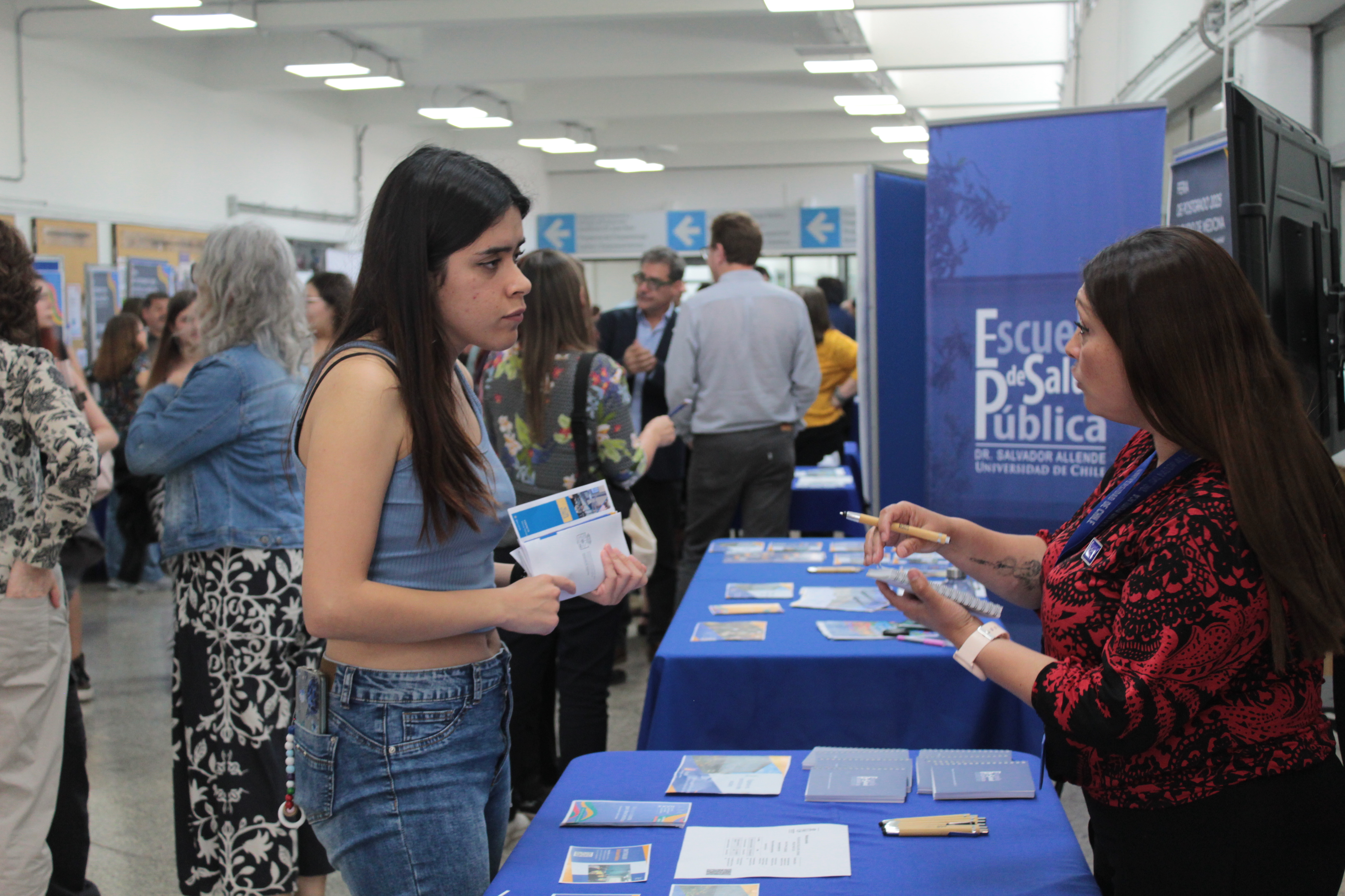 Durante la jornada, estudiantes de diversas carreras se acercaron al stand de la Escuela para conocer los detalles de sus seis programas: el Doctorado en Salud Pública, el Magíster en Salud Pública, el Magíster en Bioestadística, el Magíster en Salud Mental y Psiquiatría Comunitaria, el Magíster en Administración en Salud y el Programa de Formación de Médicos Especialistas en Salud Pública.