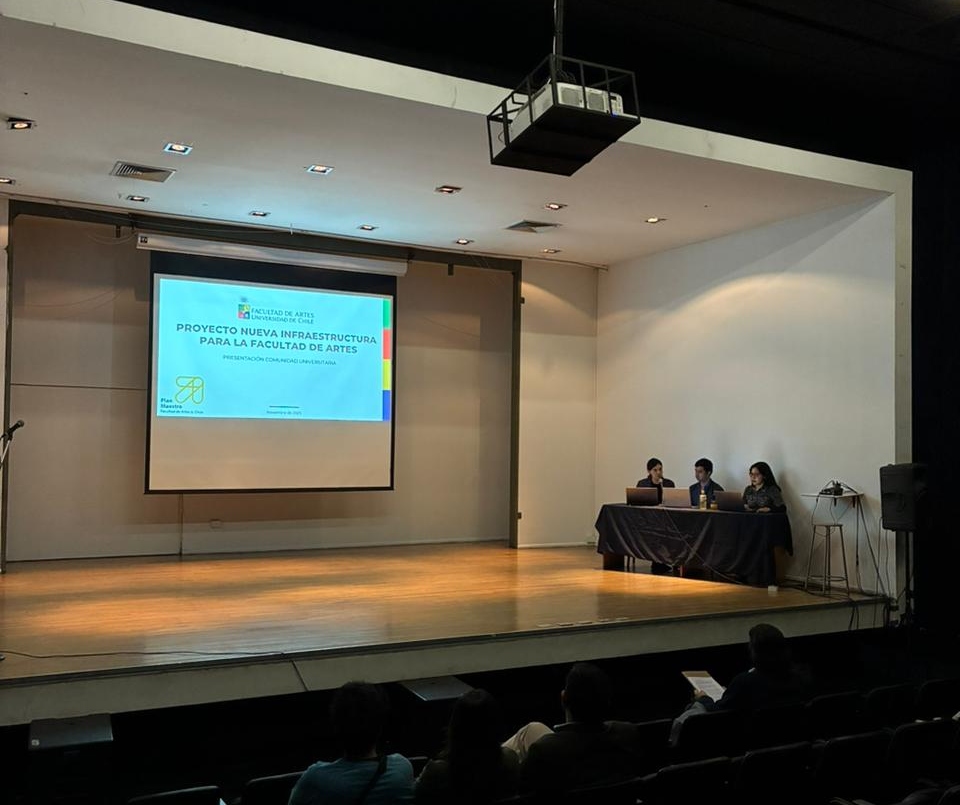 Por su lado, Luis Montes Rojas, vicedecano de la Facultad de Artes, ofreció unas palabras en la presentación, en las cuales se refirió a la historia detrás de la voluntad de unificar la Facultad de Artes, partiendo con el antiguo proyecto que prometía la construcción de la nueva Facultad de Bellas Artes en la sede Las Encinas y que fue truncado por el golpe de Estado de 1973. De esta manera, expresó cómo este nuevo proyecto busca saldar esa deuda histórica.