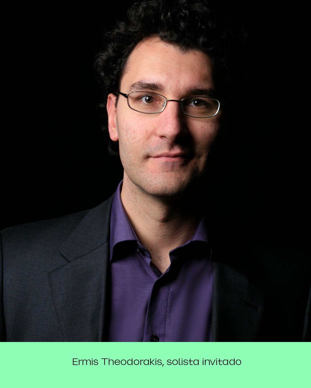 La obra que le sigue en el programa estará protagonizada por Ermis Theodorakis, solista en piano griego que interpretará la obra Synaphaï (1969) de Iannis Xenakis. Su título significa “conexidades” y alude a la compleja relación entre piano y orquesta que propone la obra. En vez del tradicional diálogo concertante, ambas fuerzas sonoras conviven en planos distintos pero complementarios, con una escritura para piano de enorme dificultad técnica, que llega a desplegar hasta once pentagramas simultáneos. El resultado es una música torrencial, de gran intensidad y un impulso rítmico irresistible.