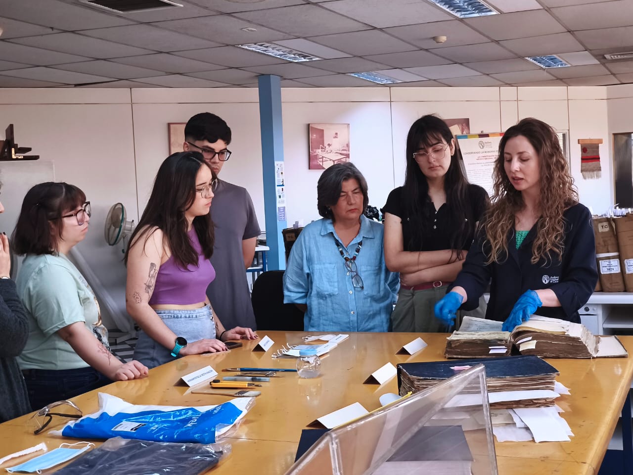 La profesora Natalia Ríos, doctora en Conservación y Restauración de Bienes Culturales y coordinadora de la Unidad de Conservación desde 2014, organizó la actividad en conjunto con la coordinación del diploma tras el interés de las y los estudiantes durante las clases de Preservación, conservación y restauración de archivos.
