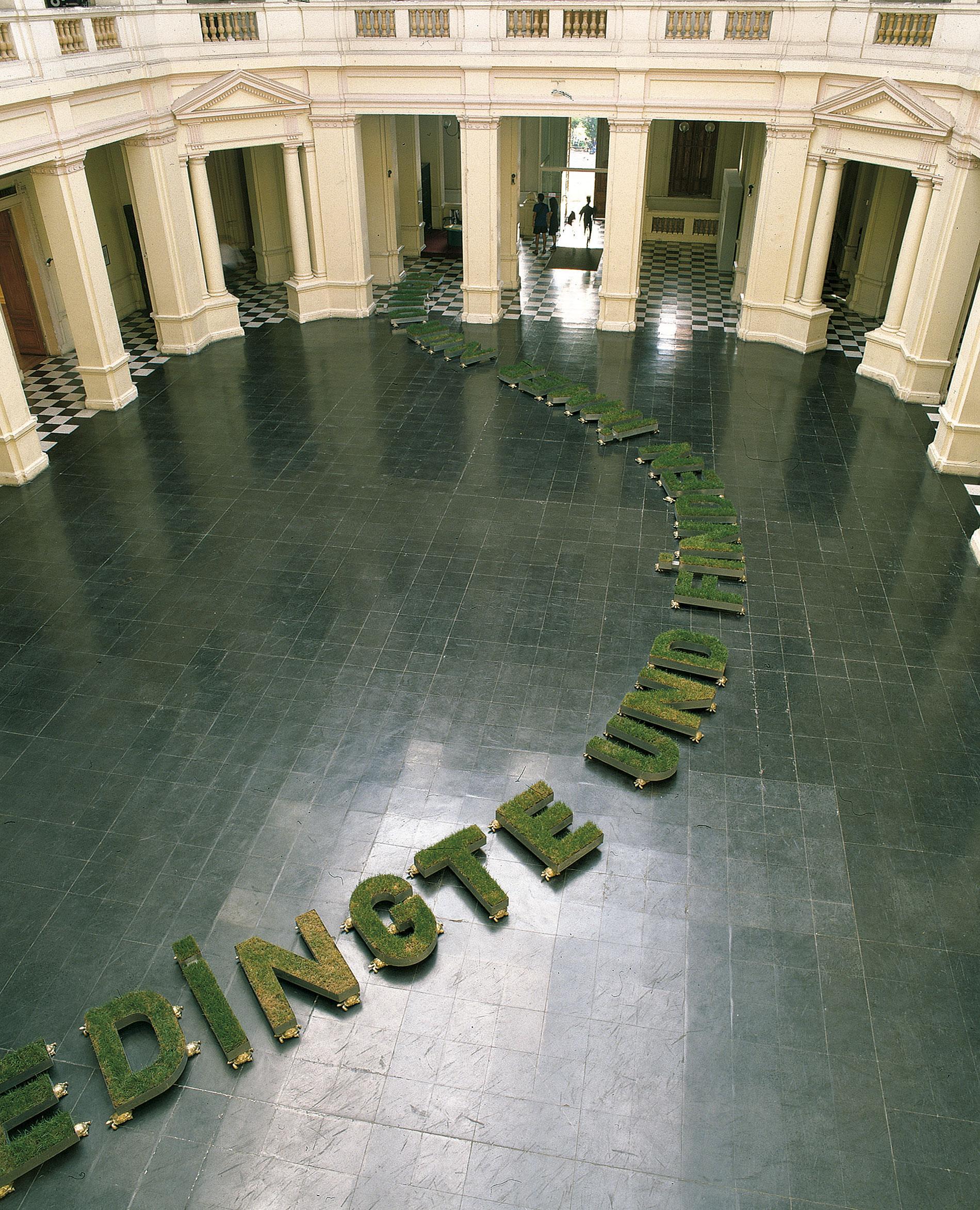 Bajo ese paradigma, presentó propuestas rupturistas, en el sentido de incorporar búsquedas distintas al formalismo. Así, por ejemplo, a fines de 2001, exhibió en el Museo de Arte Contemporáneo la obra "Tratado del entendimiento humano", instalación de grandes dimensiones basada en una frase del poeta y filósofo alemán Novalis: "Buscamos por doquier lo incondicionado y encontramos siempre cosas". La instalación ocupó el hall del Museo y estuvo compuesta por letras conteniendo césped en sus cavidades, sostenidas por tortugas de metal (205 en total).