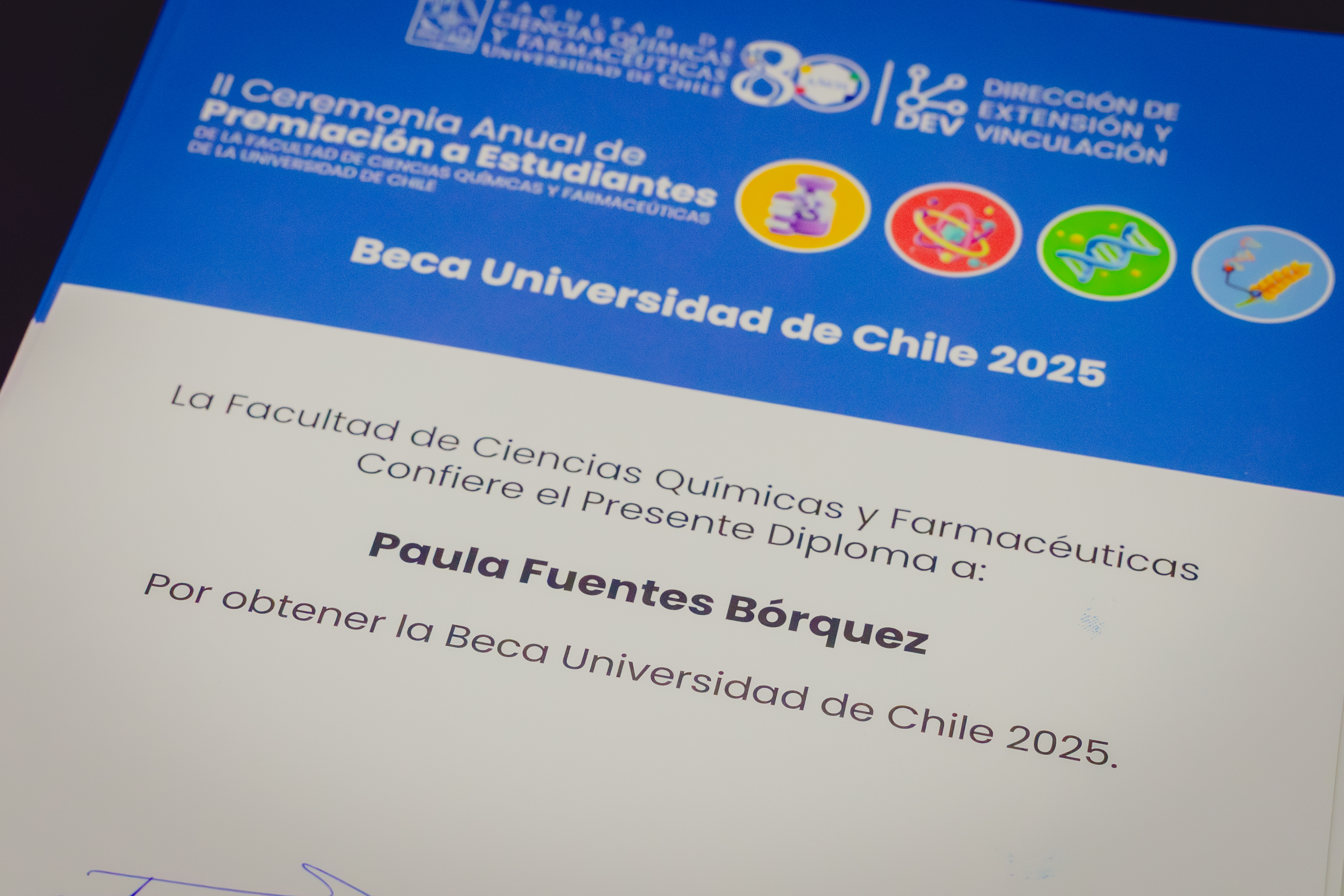 Uno de los primeros momentos destacados fue la entrega de la Beca Universidad de Chile, beneficio creado por Decreto Universitario N°002033 de 1987, que premia el rendimiento sobresaliente y apoya a jóvenes de excelencia académica. La distinción, entregada por el decano Richter fue otorgada a: