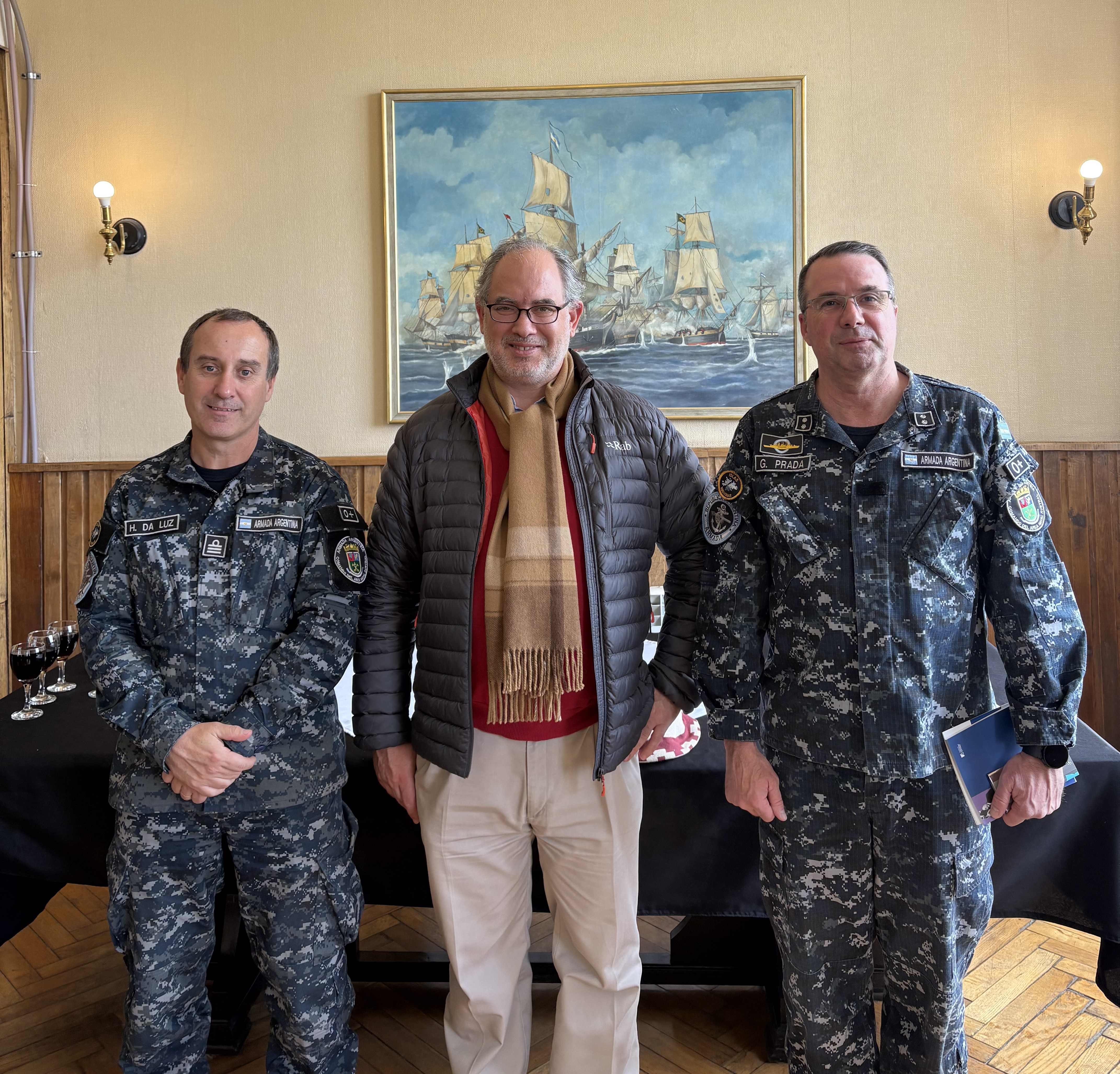 Finalmente, el académico de nuestra Escuela participó en una vista protocolar a la Base Naval de Ushuaia, donde fueron recibidos por el comandante del Área Naval Austral argentina, contraalmirante Guillermo Alberto Prada.