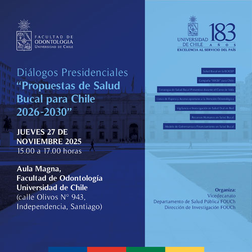 Con la realización de los Diálogos Presidenciales "Propuestas de Salud Bucal para Chile 2026-2030", organizada por el Departamento de Salud Pública y la Dirección de investigación (DIFO), la Facultad de Odontología de la Universidad de Chile (FOUCh), se convirtió en el epicentro de un sentido debate para los profesionales salubristas. Autoridades de distintas Facultades de Odontología, Gremios, Sociedades científicas odontológicas, organizaciones estudiantiles y de la sociedad civil, académicas y académicos participaron en el hito para la Salud Oral del país.