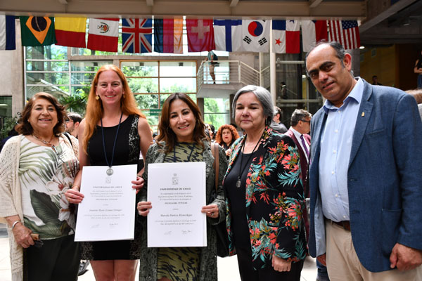 En el marco de la celebración del 183° Aniversario de la Universidad de Chile, la Dra. Susanne Krämer Strenger, Dra. Marcela Alcota Rojas y Dr. Pablo Ángel Aguirre, recibieron la Medalla Rectoral y Diploma en reconocimiento a lograr la más alta jerarquía académica en la Universidad de Chile, Profesora y Profesor Titular.