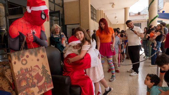 El momento más esperado llegó cuando el Viejo Pascuero anunció su llegada. En cuestión de segundos, niñas y niños corrieron a su encuentro para recibir con entusiasmo sus regalos.