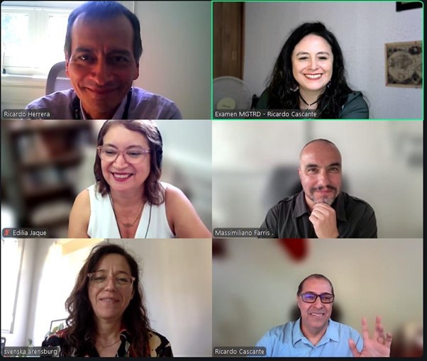 Los exámenes se realizaron en formato híbrido, ya que dos de los estudiantes residen en el extranjero, al igual que algunos de los profesores invitados a estas presentaciones.