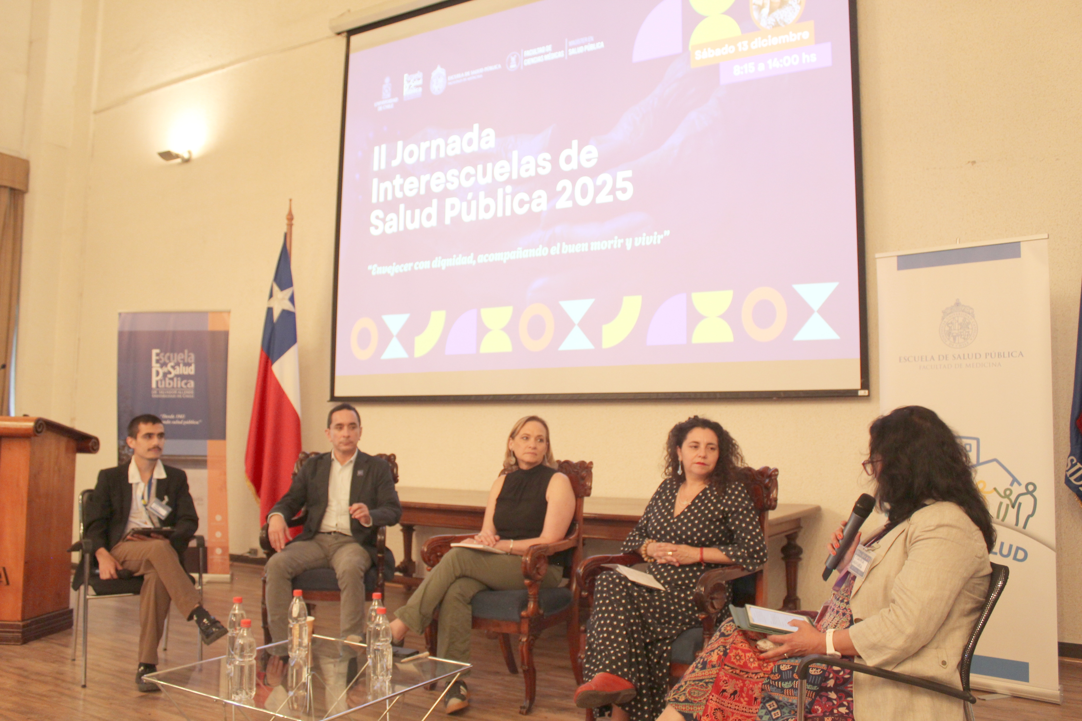 La II Jornada Interescuela de Salud Pública 2025, titulada “Envejecer con dignidad, acompañando el buen vivir y morir”, se realizó el sábado 13 de diciembre en la Facultad de Medicina de la Universidad de Chile. La instancia fue organizada por los programas de Magíster en Salud Pública de la Universidad de Chile, la Universidad de Santiago de Chile y la Pontificia Universidad Católica de Chile, siendo liderada en esta edición por la Universidad de Chile.