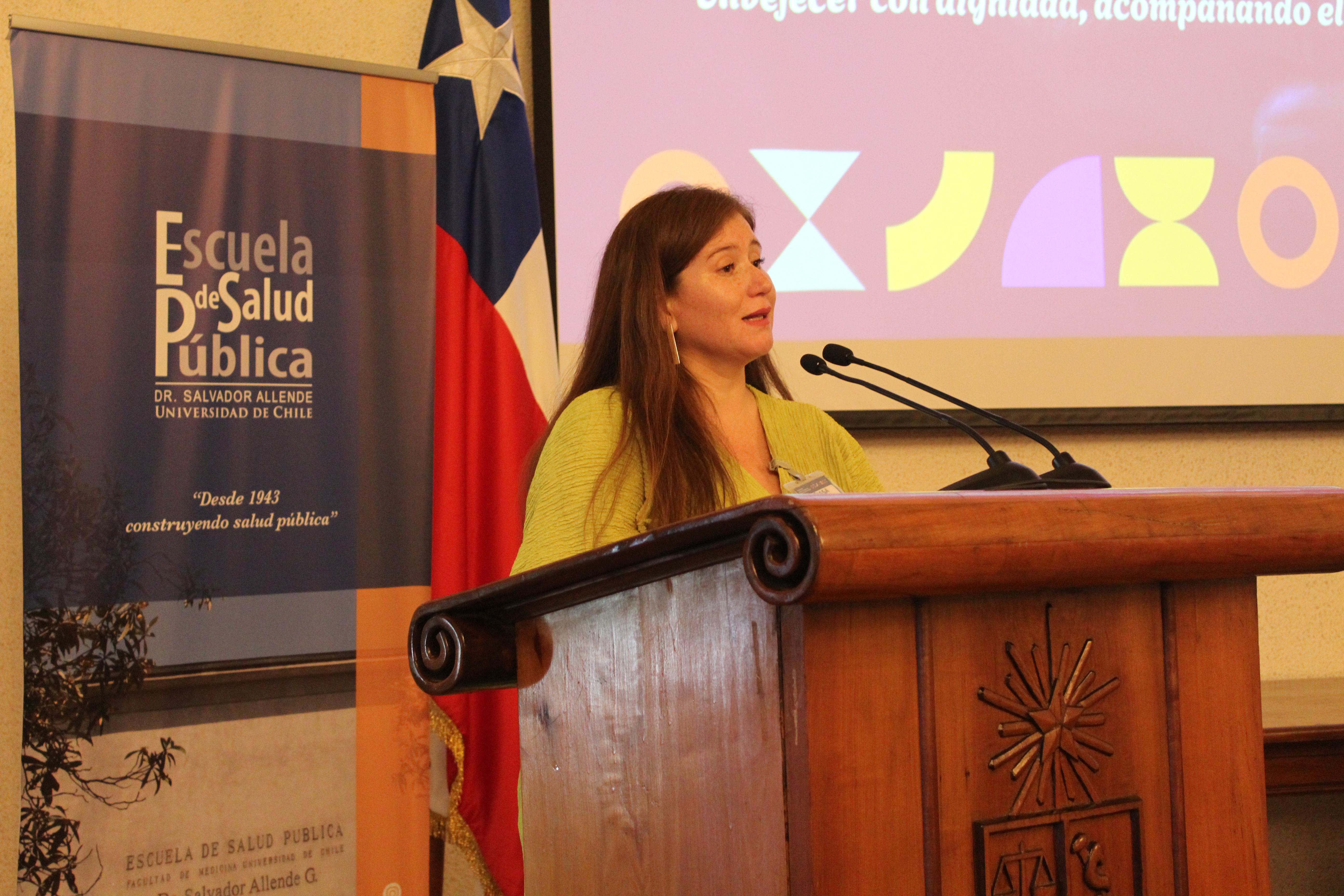 A continuación, la directora nacional del Servicio Nacional del Adulto Mayor (SENAMA), Claudia Asmad Palomo, expuso sobre la “Implementación de la política pública sobre envejecimiento activo y buen morir”. En su intervención, relevó la necesidad de avanzar desde una mirada exclusivamente sanitaria hacia un enfoque sociocomunitario. “Necesitamos mirar a las personas mayores no solo como institucionalizadas o como un problema, sino como una oportunidad como país”, afirmó.