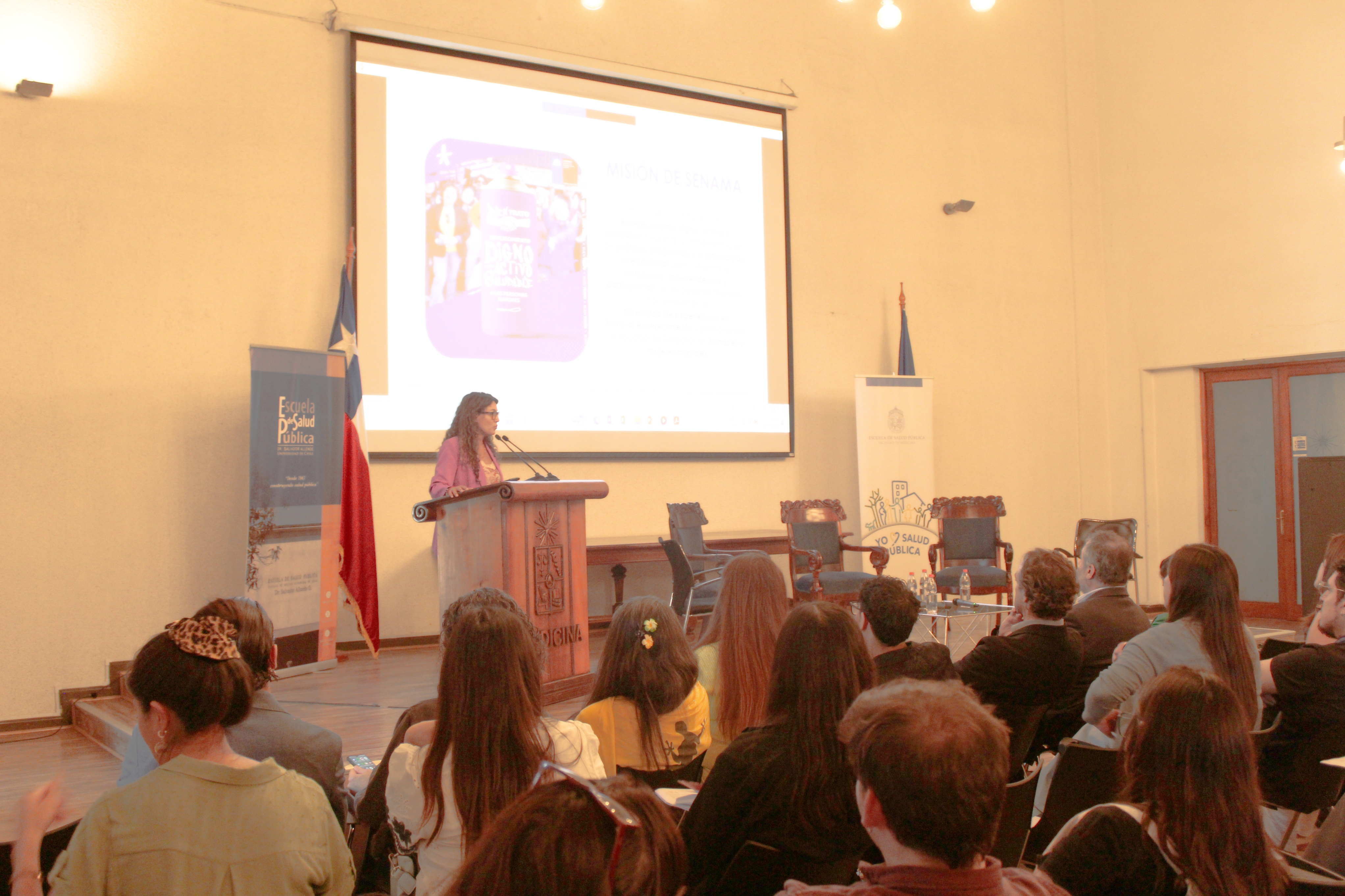 La apertura estuvo a cargo de Melissa Meza Flores, coordinadora estudiantil del encuentro y delegada de la cohorte 2024 del Magíster en Salud Pública de la Universidad de Chile, quien relevó el sentido político y formativo de la jornada. “Tener la oportunidad de compartir sobre un tema que refleja claramente la influencia de los determinantes sociales y de las políticas públicas es un gran avance”, señaló, agregando que este tipo de espacios permiten “contarle al país qué es lo que las escuelas de salud pública quieren proponerle a quien quiera que venga mañana”.