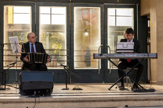 La profesora Daniela Ejsmentewicz condujo la actividad que comenzó con la interpretación de Héctor Carreño -profesor titular de nuestra Facultad y ex ministro de la Corte Suprema- como virtuoso intérprete del bandoneón en compañía de su hijo Gonzalo Carreño, pianista. También se presentó el pianista, educador y compositor, Orión Morales, con piezas de música contemporánea con base en el Jazz.