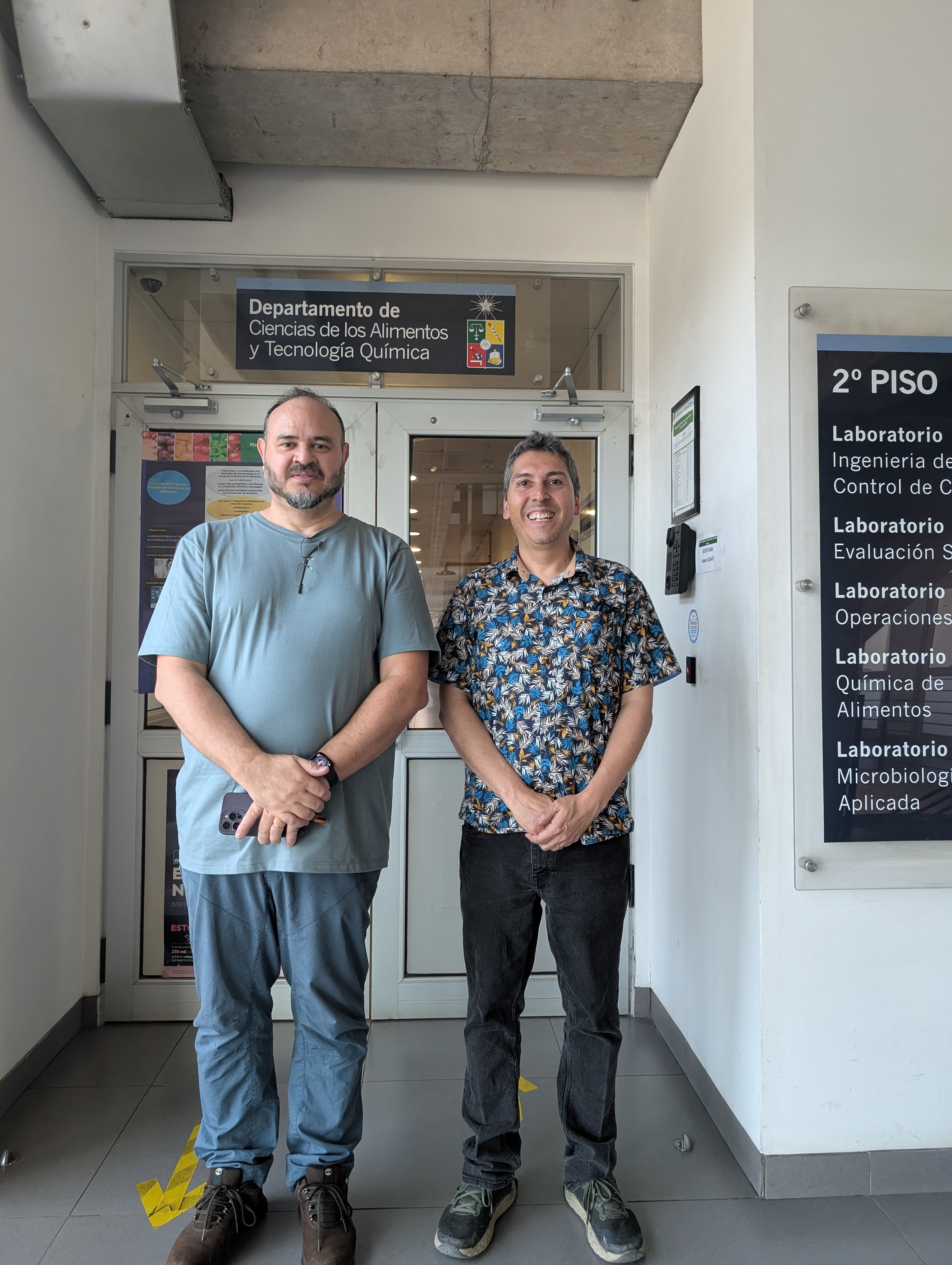 Durante su visita, el Prof. Santos se reunió con el Prof. Christian Wilson, director de Relaciones Internacionales, y Rebeca Pineda, secretaria ejecutiva de la Dirección, con quienes dialogó sobre posibles vínculos académicos y de investigación. La Dirección de Relaciones Internacionales de la Universidad coordinó su visita en conjunto con la misma unidad de nuestra facultad. Además, junto a los profesores Luis Puente y Catalina Landeta, recorrió las instalaciones de docencia e investigación asociadas al Departamento de Ciencia de los Alimentos y Tecnología Química, donde conoció los laboratorios especializados en: