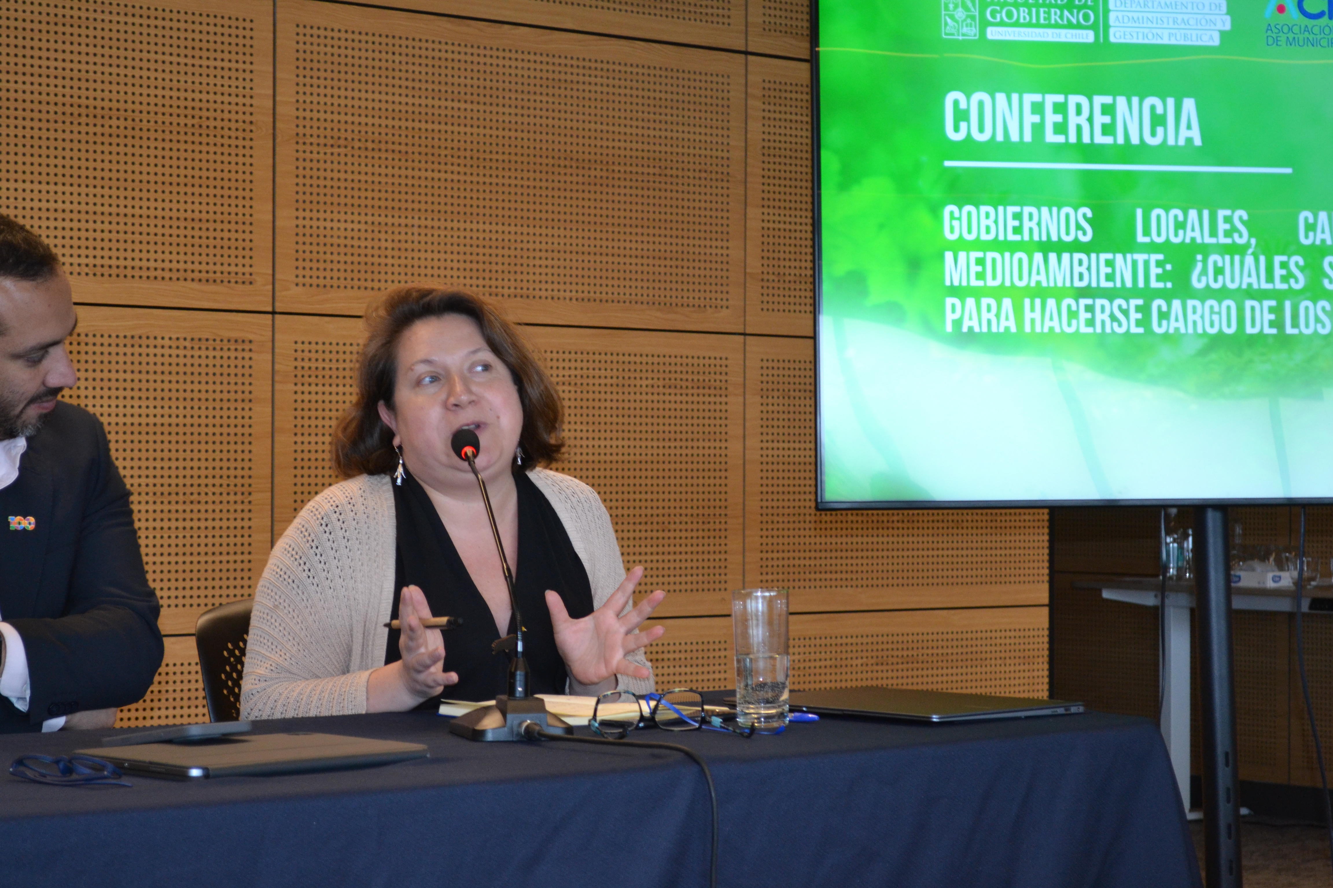 Le siguió la presentación de Camila Merino Catalán, alcaldesa de Vitacura, cuya intervención se alineó con la importancia de contar con estructuras robustas, considerando que, según los datos del estudio presentado, el "95% de los municipios cuenta con una unidad responsable de medio ambiente", lo que constituye una base institucional instalada necesaria para liderar proyectos de sostenibilidad.