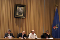 Luego se dio paso a la segunda fase de la sesión: la formación de las respectivas mesas redondas. La Decana de la Facultad de Medicina, Cecilia Sepúlveda, fue la moderadora de la mesa conformada por el doctor Giorgio Solimano; el doctor Fernando Muñoz, Director de la División de Estudios del Ministerio de Salud; Eduardo Aninat, Presidente de la Asociación de ISAPRES de Chile; y el doctor Felipe Sierra, del Nacional Institute of Aging de Estados Unidos.