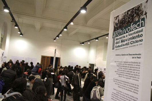 Con estas palabras definió la muestra el actual Presidente de la FECh, Julio Sarmiento, a la hora de invitar a recorrerla en el MAC de Quinta Normal. Y no es para menos, pues se trata de la primera vez que se hace un trabajo de este tipo en el ámbito del movimiento estudiantil.