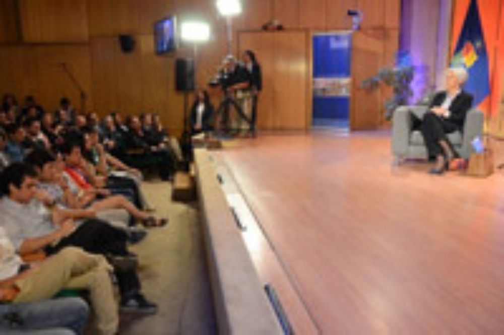 Posteriormente, alumnos preguntaron a Christine Lagarde su opinión y posición frente a diferentes tópicos, incluidos la educación, los estilos de administración política de los países latinoamericanos, la desigualdad que existe entre los países más ricos -que representan al 10% de las economías mundiales- y los más pobres, entre otros. A esta actividad asistieron destacadas personalidades como Carlos Massad, Augusto Aninat, Janet Awad, Luis Riveros, Alfonso Traub, Nicolás Starck, entre otros.