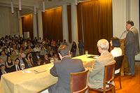 "Quiero agradecer a la Universidad de Chile por oficiar como anfitriones de esta conferencia que convoca a grandes personalidades alrededor del mundo. Se trata de una actividad que nace en una universidad pública y es un gusto que en Chile nos reciba otra institución, también de carácter pública". Con estas palabras se dirigió el Presidente Richmond a la máxima autoridad de la Casa de Bello, Rector Víctor Pérez Vera.