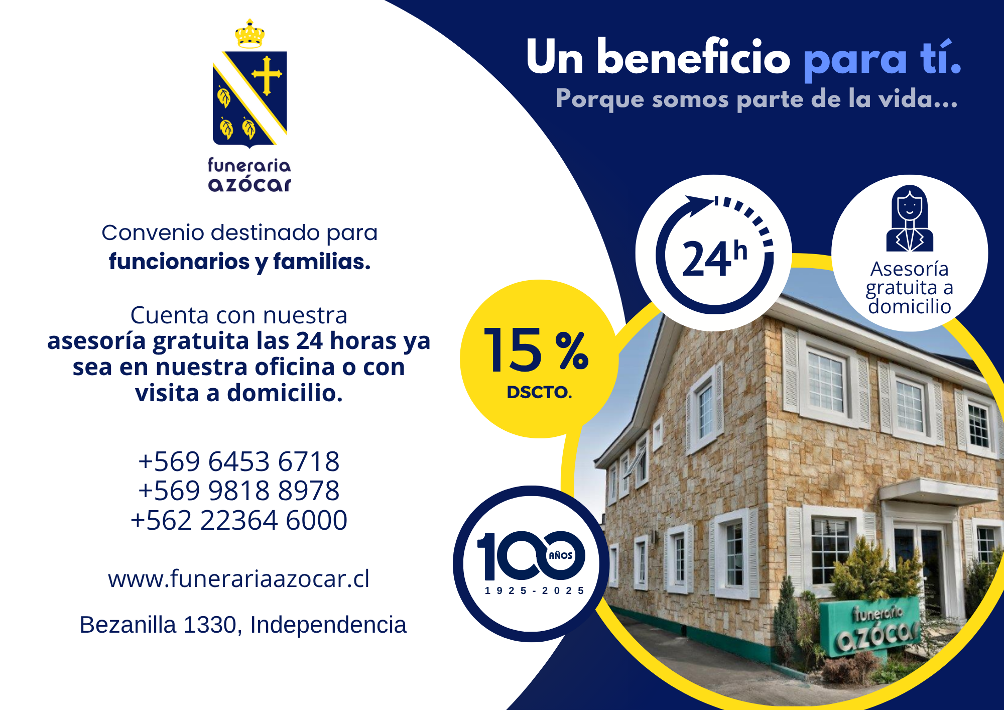 Ofrece un 15% de descuento sobre el valor de sus planes a los(as) socios(as) y su grupo familiar. La funeraria cuenta con cinco tipos de servicios funerarios que indistintamente el plan a elección incluyen: