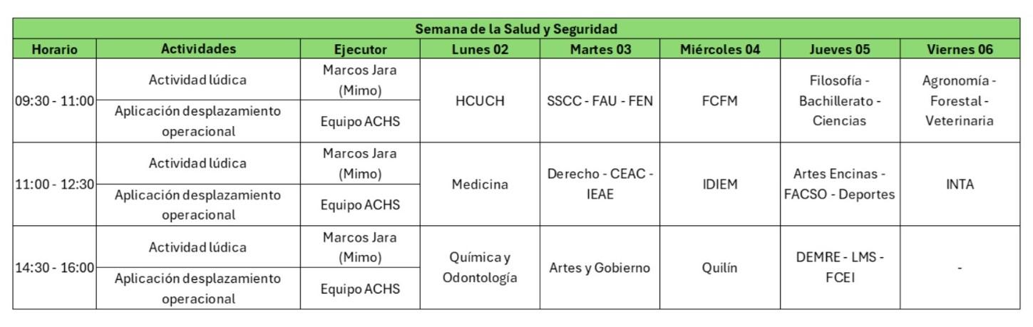 Para mayor información de todas las actividades a desarrollar, tomar contacto con las(os) Expertas(os) de Prevención de Riesgos de su organismo universitario en el siguiente Enlace