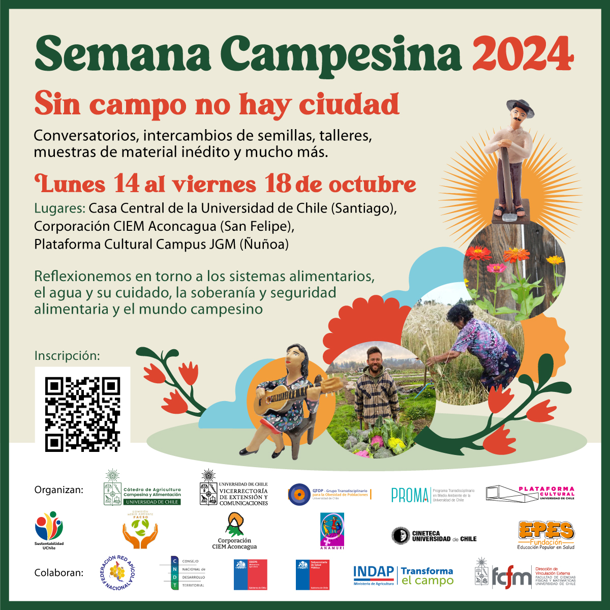 Variadas instituciones de la Casa de Bello, junto a distintas organizaciones sociales y públicas, realizarán la segunda edición de la Semana Campesina 2024, titulada “Sin campo no hay ciudad”, la que se desarrollará entre el lunes 14 y viernes 18 de octubre con actividades gratuitas en Santiago y San Felipe.