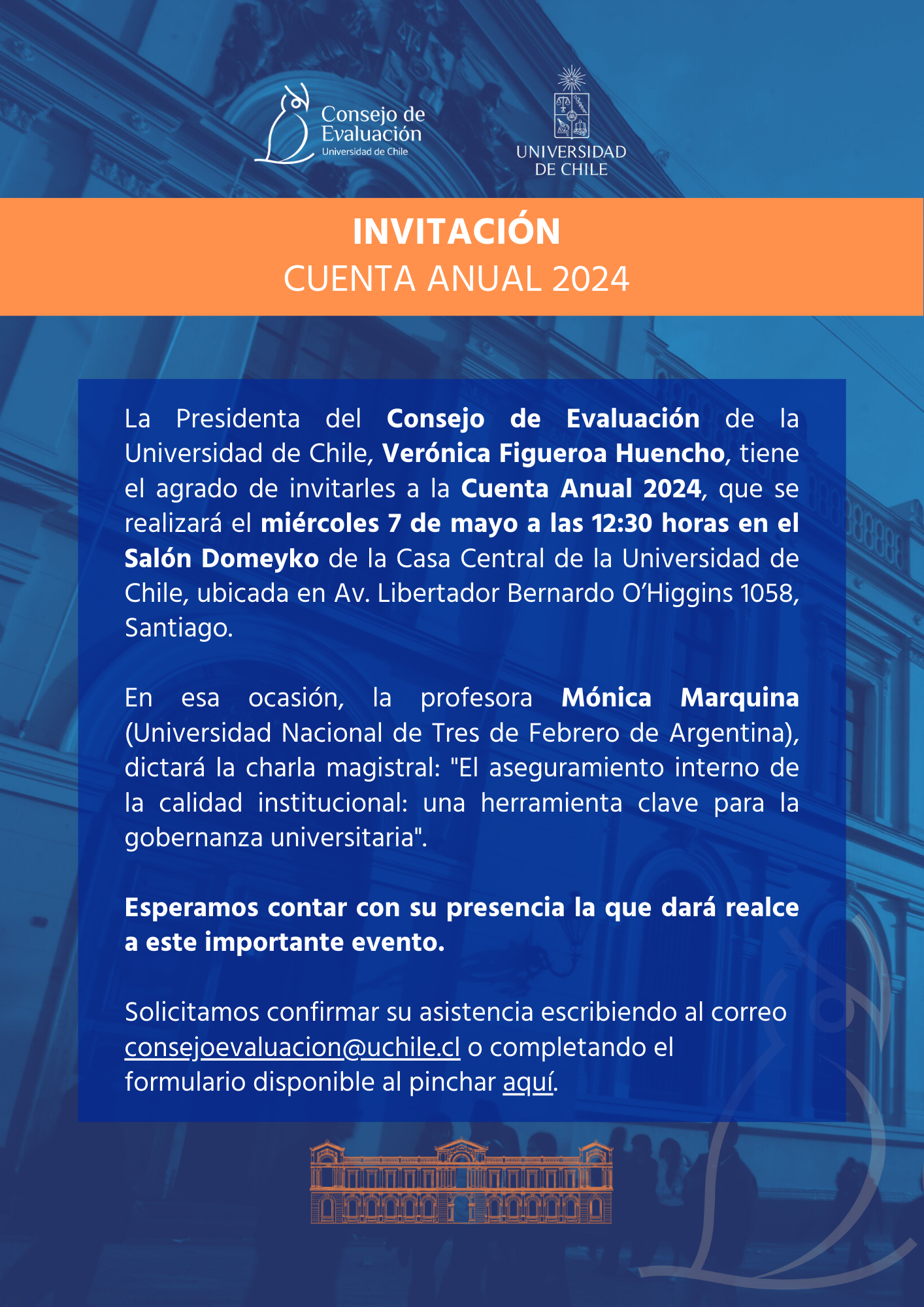 Cuenta Anual del Consejo de Evaluación y Charla Magistral profesora Mónica Marquina "El aseguramiento interno de la calidad institucional: una herramienta clave para la gobernanza universitaria"