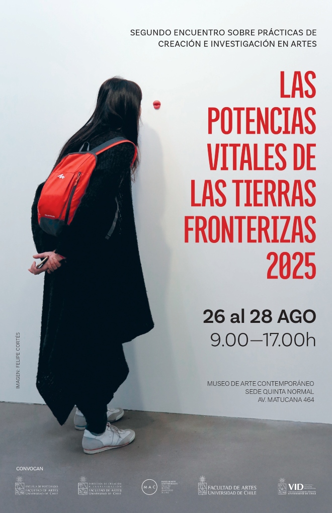 En el marco de la presentación del Doctorado en Creación Artística, de la Facultad de Artes de la Universidad de Chile, la Dirección de Creación Artística e Investigación de la misma Facultad, convoca a la realización del Segundo Encuentro: Las potencias vitales de las tierras fronterizas, en donde abordaremos la posibilidad de pensar colectiva y colaborativamente una de las cuestiones a las que nos convoca la universidad actualmente: el problema del arte como generador de conocimiento. Cuestión que proponemos pensar de un modo situado, es decir, interrogándonos respecto de: ¿qué implica pensar en ello desde una perspectiva latinoamericana?