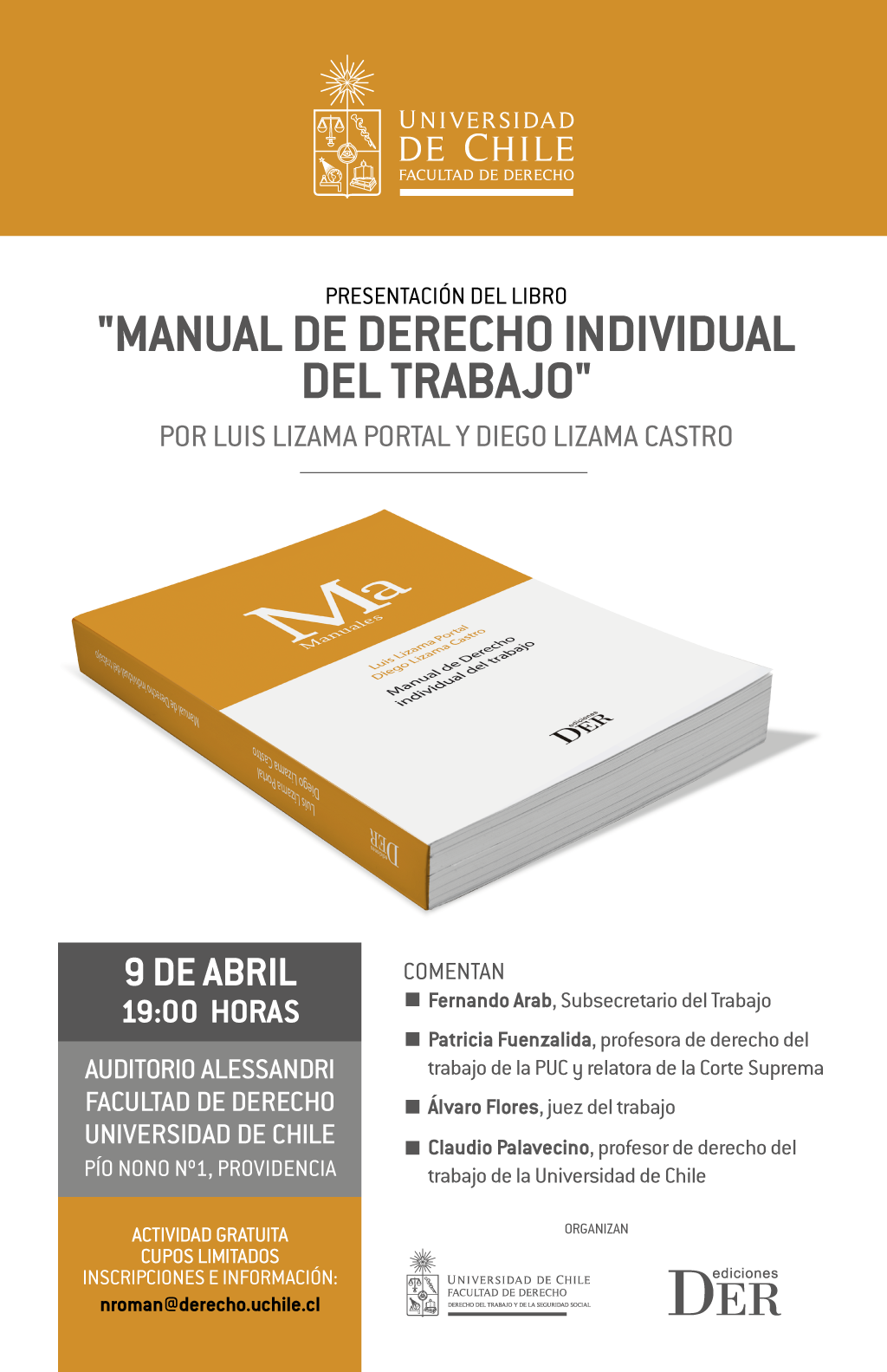 Invitamos a la presentación del libro "Manual de Derecho Individual del Trabajo", por Luis Lizama Portal y Diego Lizama Castro.