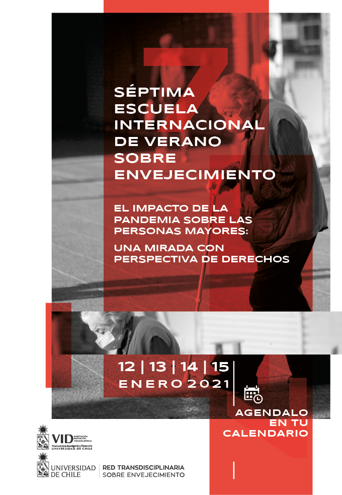 La Red transdisciplinaria sobre Envejecimiento, en conjunto con la Unidad de Redes Transdisciplinarias de la Vicerrectoría de Investigación y Desarrollo, llevarán a cabo la Séptima Escuela Internacional de Verano sobre Envejecimiento, denominada “El impacto de la pandemia sobre las personas mayores: una mirada con perspectiva de derechos”.