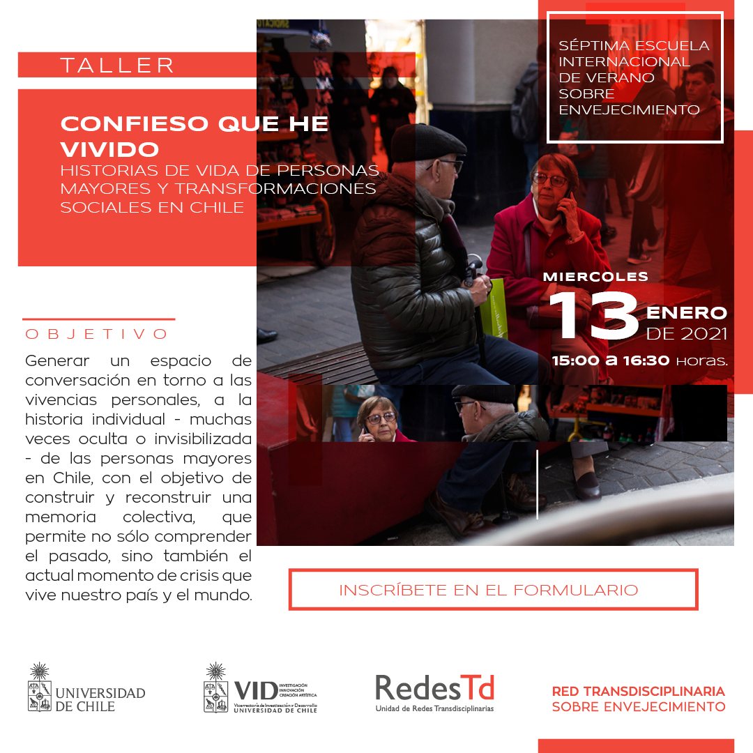 El taller “Confieso que he vivido” -que forma parte del espacio transdisciplinario de la Séptima Escuela Internacional de Verano sobre Envejecimiento- busca ser un espacio para compartir estas memorias (re)constituyéndolas en un espacio de conversación y reflexión abiertos a toda la comunidad pero con especial énfasis en las personas mayores, sin límite de edad.