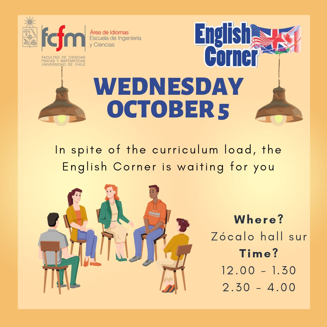 (Beauchef 850, Santiago, Chile)Sesión semanal en que las y los estudiantes encuentran un espacio seguro para conversar sobre diversas temáticas de actualidad (organizadas de acuerdo a sus intereses) y participar en juegos, actividades virtuales y karaokes, entre otros. Cada sesión tiene una duración de tres horas divididas en dos bloques, con dos tutores por cada bloque (estudiantes de la Escuela) a cargo del acompañamiento y monitoreo, guiando las conversaciones y fomentando la interacción entre los y las participantes más allá de su nivel de inglés.