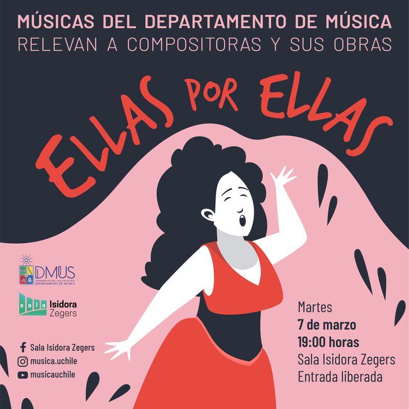 El Departamento de Música (DMUS) de la Facultad de Artes de la Universidad de Chile conmemorará el Día Internacional de la Mujer Trabajadora con el concierto titulado Ellas por Ellas.