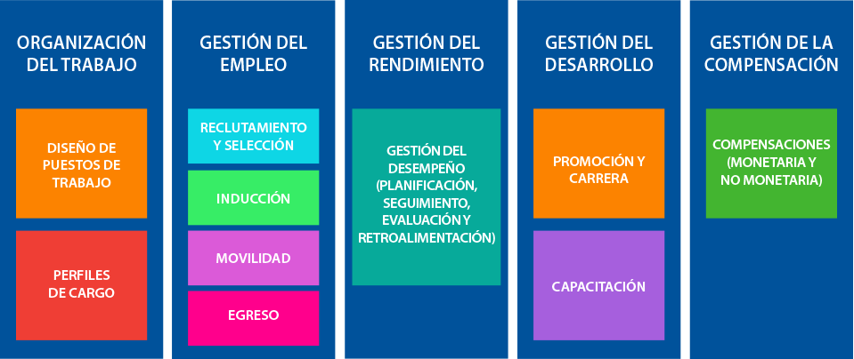 El modelo integrado de gestión del empleo y los recursos humanos, contempla varios subsistemas de gestión reunidos con el objeto de potenciar a las personas, alinearlas a la estrategia de la organización y lograr sus objetivos.