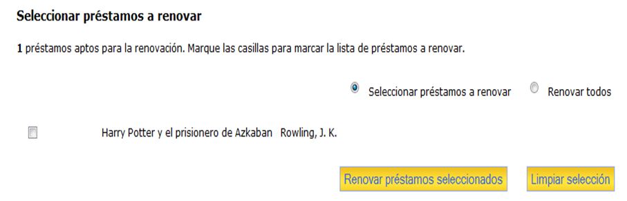 | 1. Seleccionar opción Renovar mis préstamos: |