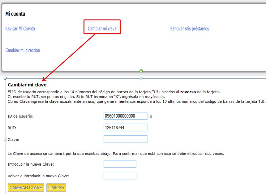 | Ingresando a Mi Cuenta es posible solicitar actualización de datos personales de la cuenta de biblioteca: correo electrónico, dirección postal y teléfono. |