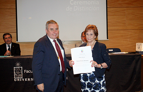Con un relato de la trayectoria académica y profesional, el Vicerrector Juan Cortés abrió las palabras en la ceremonia de reconocimiento como Profesora Emérita a Susana Encina, destacada académica de la Facultad de Odontología de la Universidad de Chile. La distinción fue otorgada por parte del Rector Ennio Vivaldi quien presidió la ceremonia y que contó además con la presencia de la Vicerrectora Rosa Devés, entre otras autoridades.