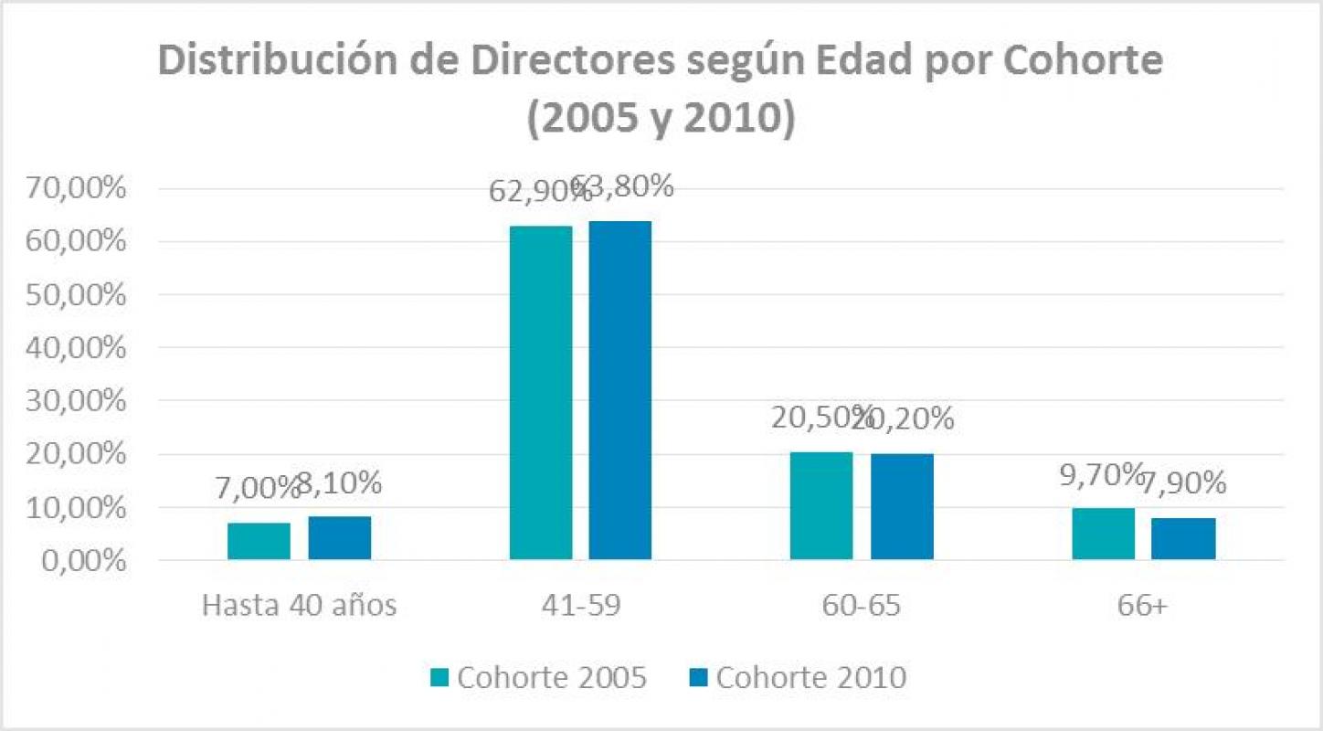 El estudio permitió caracterizar a los directores de las escuelas analizadas: en el año 2005, el 62,9 por ciento del total de directores se encontraba en el grupo etario de los 40 a 59 años, porcentaje que se mantiene estable hacia el 2010. Un bajo porcentaje de los directores tiene menos de 40 años, mientras que cerca del 30 por ciento tiene 60 o más años (cuadro 1).