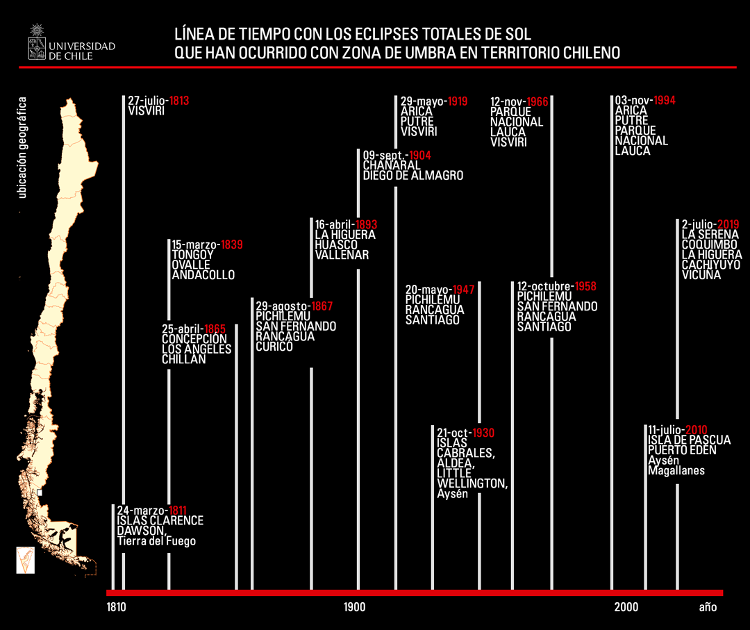 El Premio Nacional de Ciencias Exactas y académico de la Universidad de Chile Mario Hamuy detalla, en su libro “El Sol Negro” (2019), la relevancia que tuvo para nuestro país el estudio de estos fenómenos astronómicos, señalando que desde la época de la Primera Junta de Gobierno en 1810 se mantiene registro estable de los eclipses solares, tanto parciales como totales.