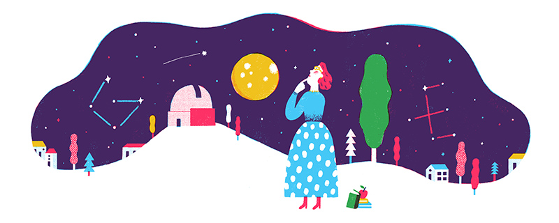 Ilustrado por el artista nacional Pablo Luebert, el doodle de Adelina Gutiérrez es un homenaje a una mujer que se adelantó años luz a su tiempo, siendo la primera chilena en obtener un doctorado en Astrofísica (en la Universidad de Indiana, Estados Unidos, 1964), convirtiéndose así en una pionera en su campo de expertise a nivel mundial. Además, y gracias a su gran contribución científica, es la primera mujer y astrónoma en ingresar a la Academia Chilena de Ciencias en el año 1967.