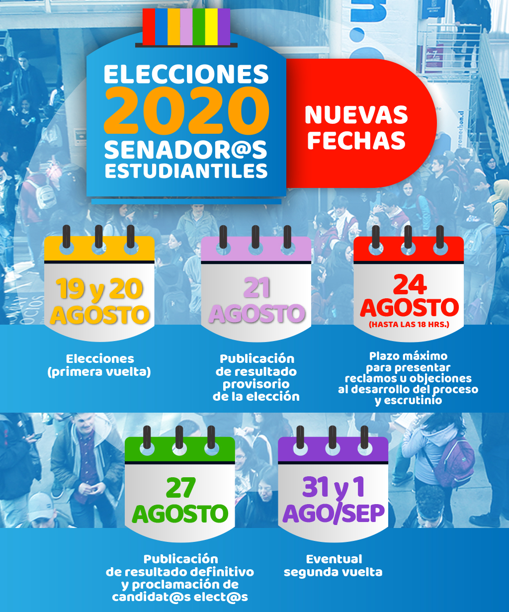 - miércoles 19 y jueves 20 de agosto: elecciones (primera vuelta)