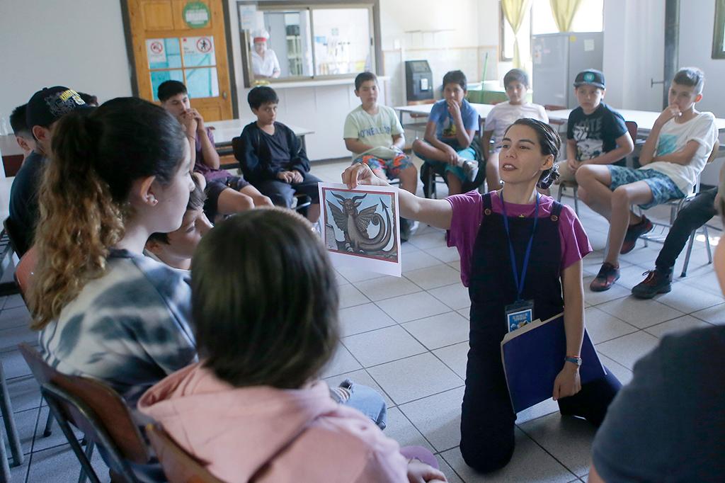 De manera simultánea, en la Escuela Paula Jaraquemada de San Vicente de Tagua Tagua, profesionales de la Facultad de Odontología dictaron el taller “Besa la vida, cuida tu boca”. En paralelo, se desarrolló el taller “El monstruo de Tagua Tagua”, actividad organizada por el Archivo Central Andrés Bello y a cargo de la actriz Zoila Schrojel y la historiadora y directora del núcleo patrimonial, Alejandra Araya, quien manifestó su alegría por la alta convocatoria y el vínculo que se logró generar con las y los asistentes. ”Creo que tienen mucha necesidad de ser oídos y hablar del monstruo de Tagua Tagua les permitió conocerse, conversar, expresarse y contarnos más cosas del lugar. Eso nos permite nutrir la historia que a lo mejor uno trae como más rígida”.