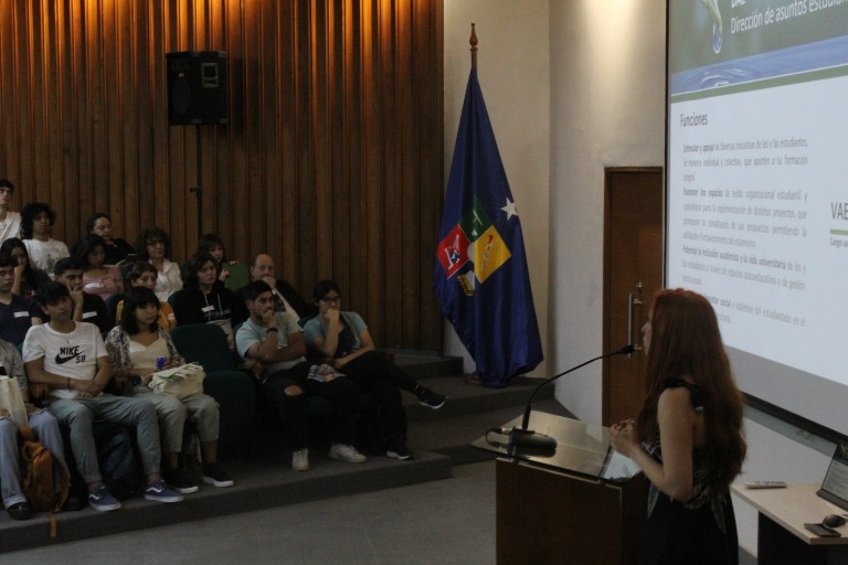 También estuvo presente el Centro de Estudiantes de Ingeniería Forestal (CEIF), a través de su representante, Diego Soto, quien apuntó a la importancia de saber equilibrar la vida académica con las experiencias fuera de las aulas. Además, la académica y directora de la Dirección de Asuntos Estudiantiles de la Facultad, la académica Consuelo Fritz, en su presentación subrayó los servicios que ofrece nuestro plantel en ayuda de los y las estudiantes: SEMDA UChile, la secretaría de estudios, la nueva Oficina de Diversidad, Género e Inclusión, entre otras.