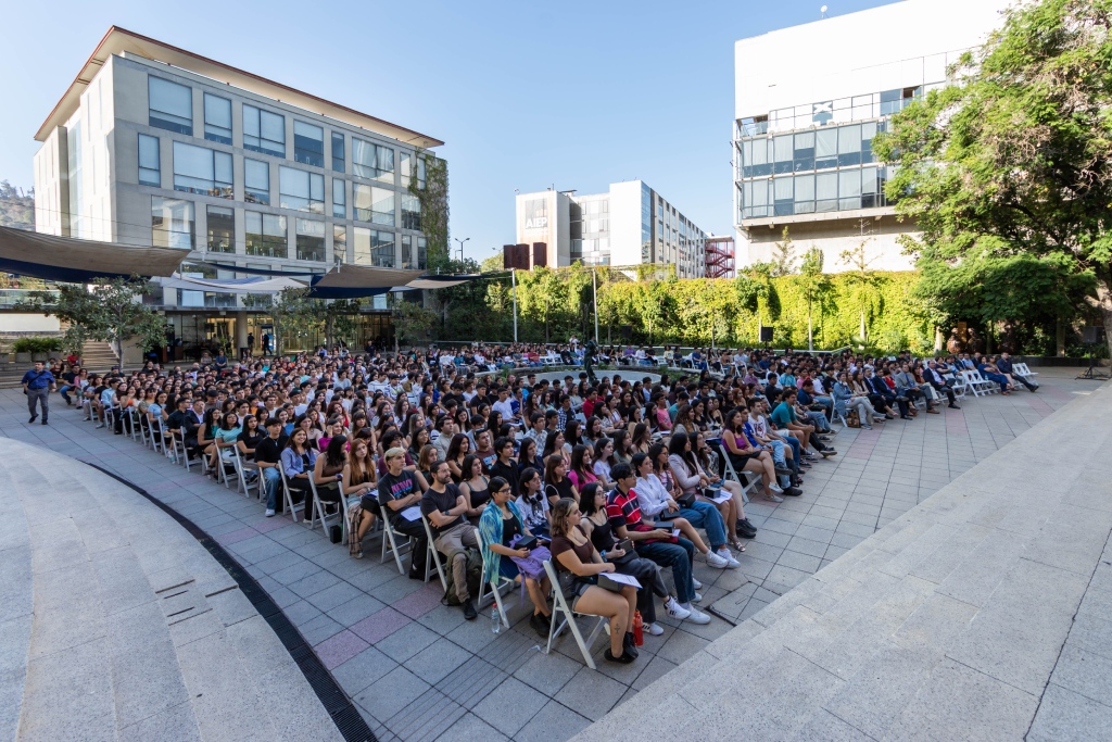 El acto contó con la participación de cerca de 480 estudiantes de primer año, quienes recibieron la bienvenida del Decano Pablo Ruiz-Tagle, quien les recordó que "si aprovechan con responsabilidad y sentido de servicio público su estadía, estos años de estudio universitario pueden llegar a ser el capítulo más transformador y decisivo de sus vidas".
